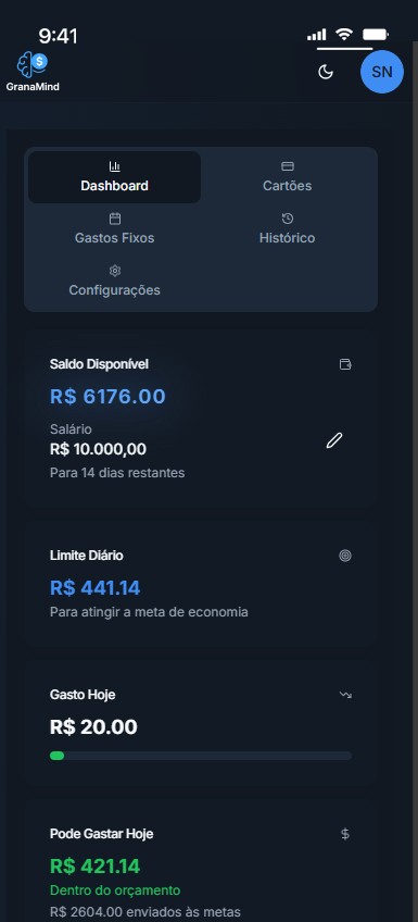 Nunca consegui manter um controle de gastos por mais de uma semana. Com o GranaMind, já faz 4 meses que uso todo dia.