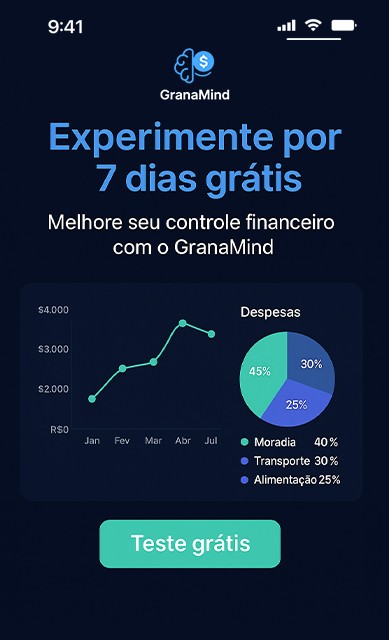 O GranaMind te ajuda a organizar gastos e economizar mais. Teste grátis por 7 dias!