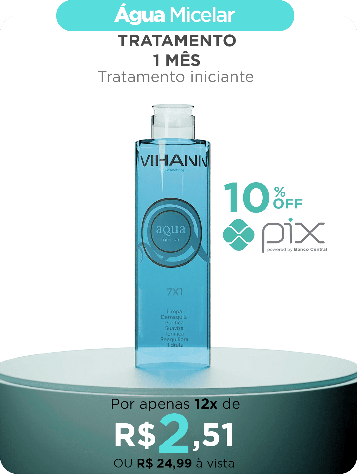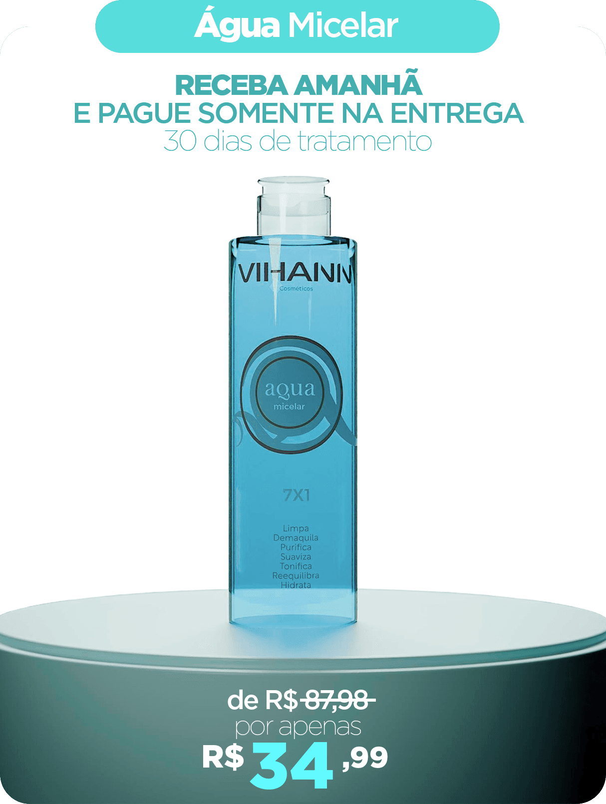A Água Micelar remove impurezas e toxinas da pele.